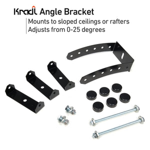 The Kradl adjustable angle bracket makes it easy to mount your Kradl to angled ceilings or rafters. It enables Kradl to remain level for optimal and reliable performance.